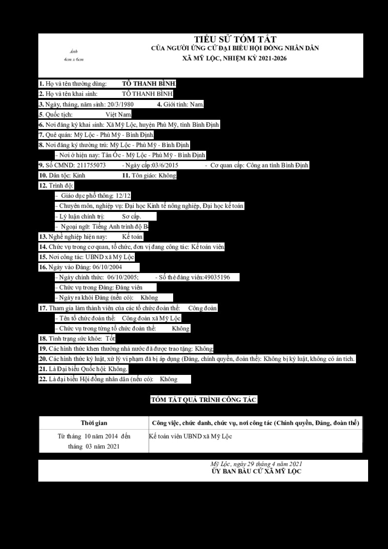 Tiểu sử đại biểu HĐND xã 26/09/2025, 18:50:01 - Lượt xem: 7 Tweet Thêm vào danh sách Báo xấu Thông tin tài liệu Tiểu sử đại biểu HĐND xã