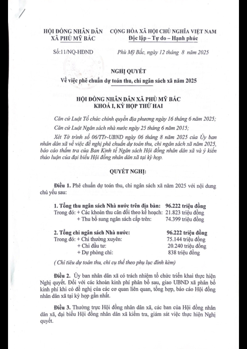 | Tiêu đề văn bản | Nghị quyết về việc phê chuẩn dự toán thu, chi ngân sách xã năm 2025 | ||