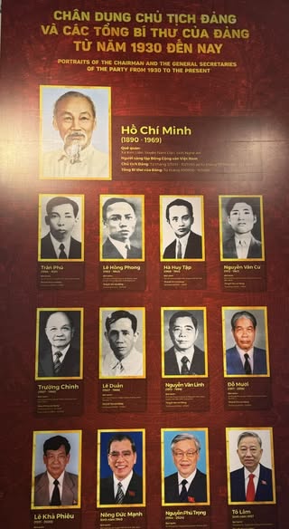 Tư liệu, hiện vật gắn liền với Chủ tịch Hồ Chí Minh, các Tổng Bí thư, lãnh đạo tiền bối tiêu biểu của Đảng và Nhà nước. Mẫu Cờ Đảng, huy hiệu, huân chương, thẻ đảng viên, bằng khen... qua các thời kỳ cách mạng.